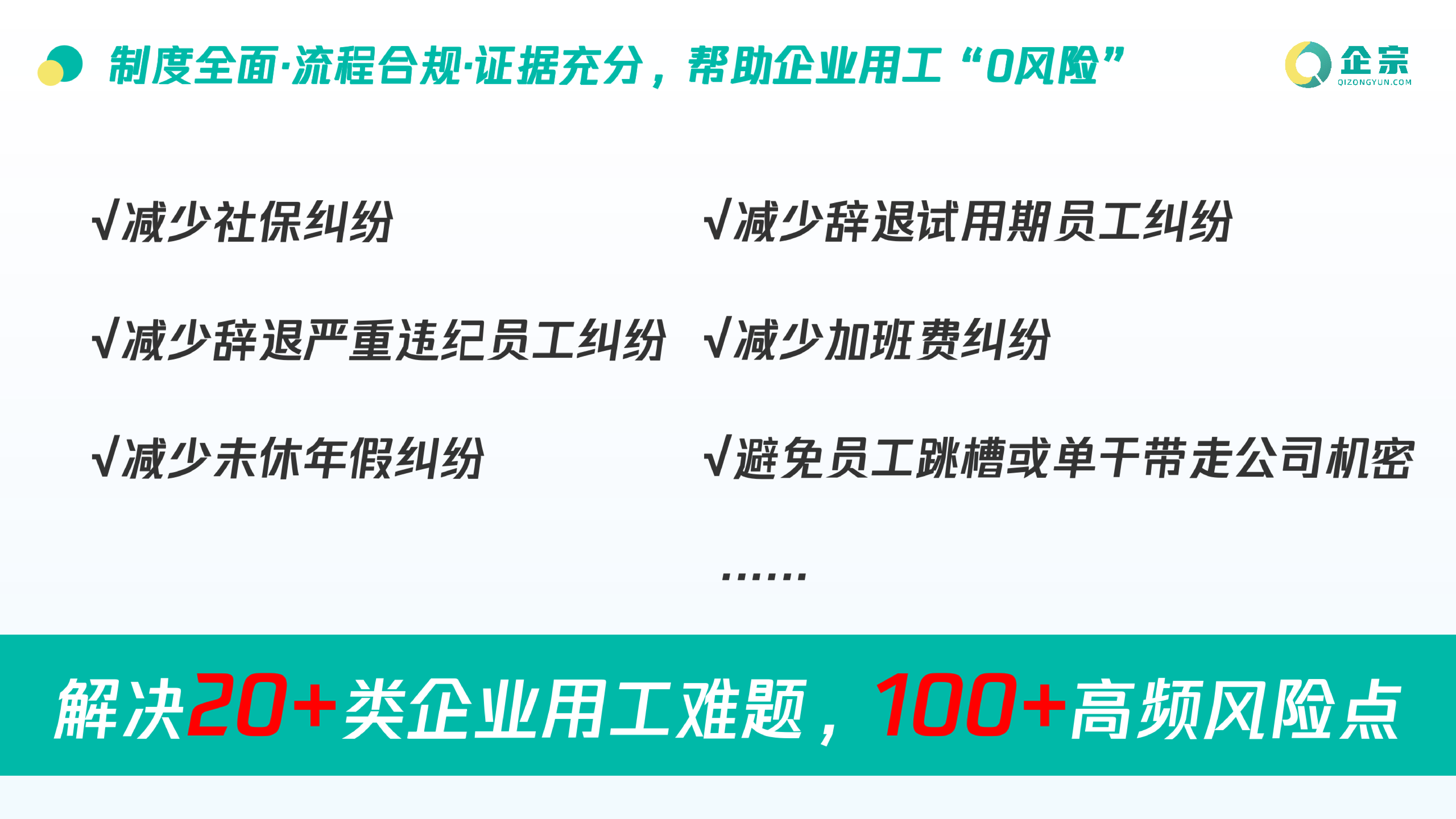 ●风险规避覆盖入职流程破绽多、合同签署漏洞多、规章制度硬伤多、工资发放热惹祸多、辞退解聘麻烦多以及离职手续问题多这六大场景。